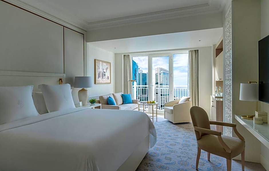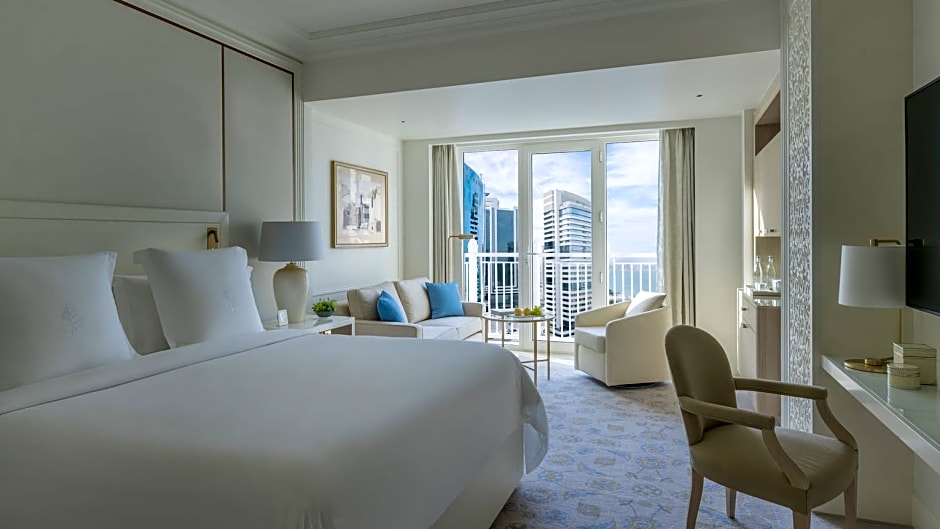 Featuring a balcony with a view of the Arabian Gulf, this luxurious suite features a modern, French-Empire décor with a rich gold color scheme. The suite is air-conditioned and fitted with carpeted floors. It includes a satellite TV, a wardrobe and a bathroom with a shower.